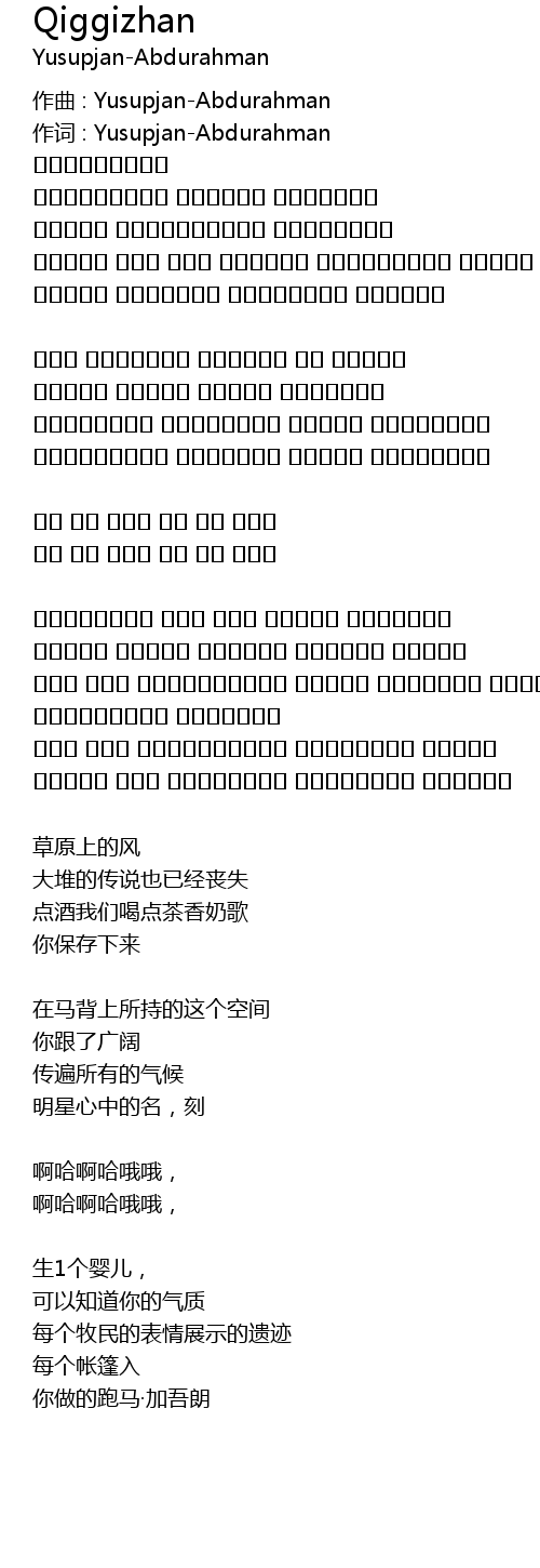 | 作词 : Yusupjan-Abdurahman | |
