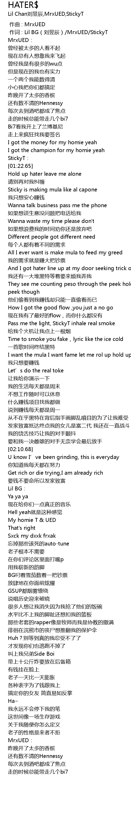| [00:01.000] | zuò cí : Lil BG liú yù chén MrxUED StickyT |