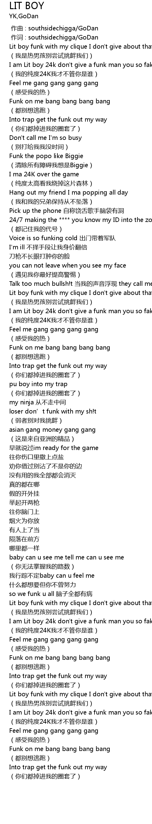 | [00:18.27] | I am Lit boy 24k don't give a funk man you so fake |