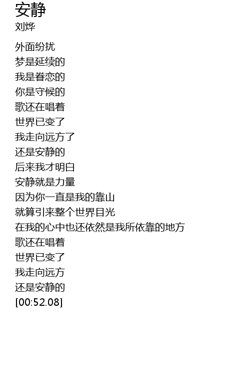 | [00:21.53] | 还是安静的 |