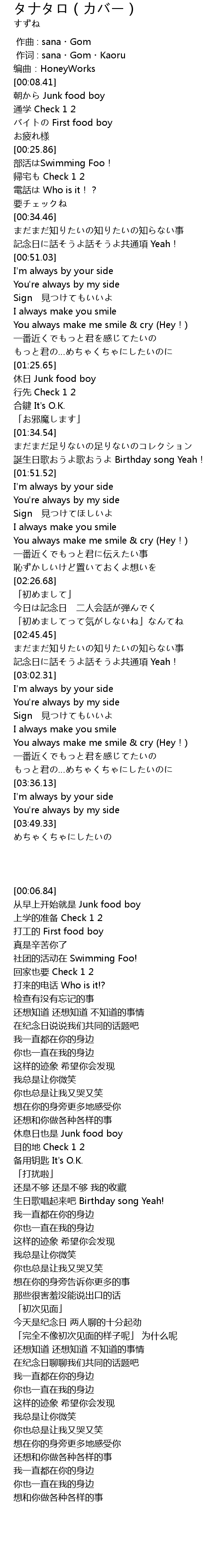| [01:26.77] | 休息日也是 Junk food boy |