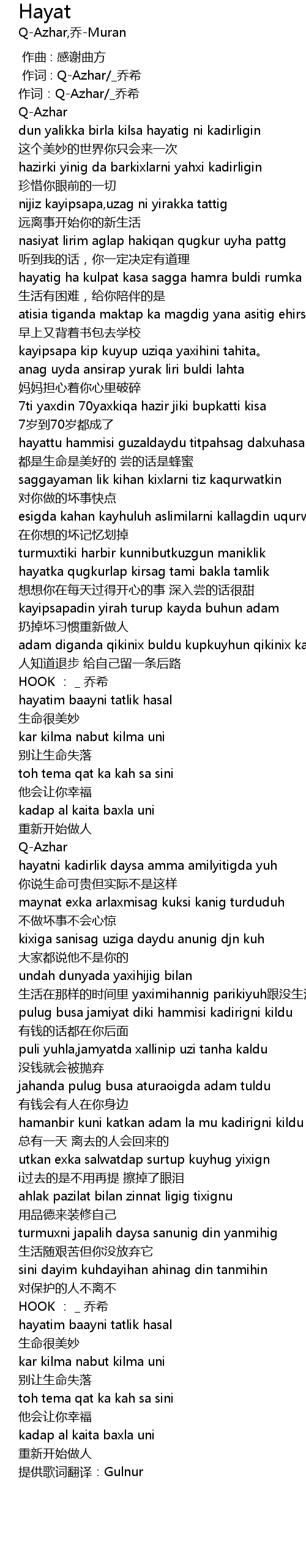 | [00:00.000] | tí gōng gē cí fān yì: Gulnur |
