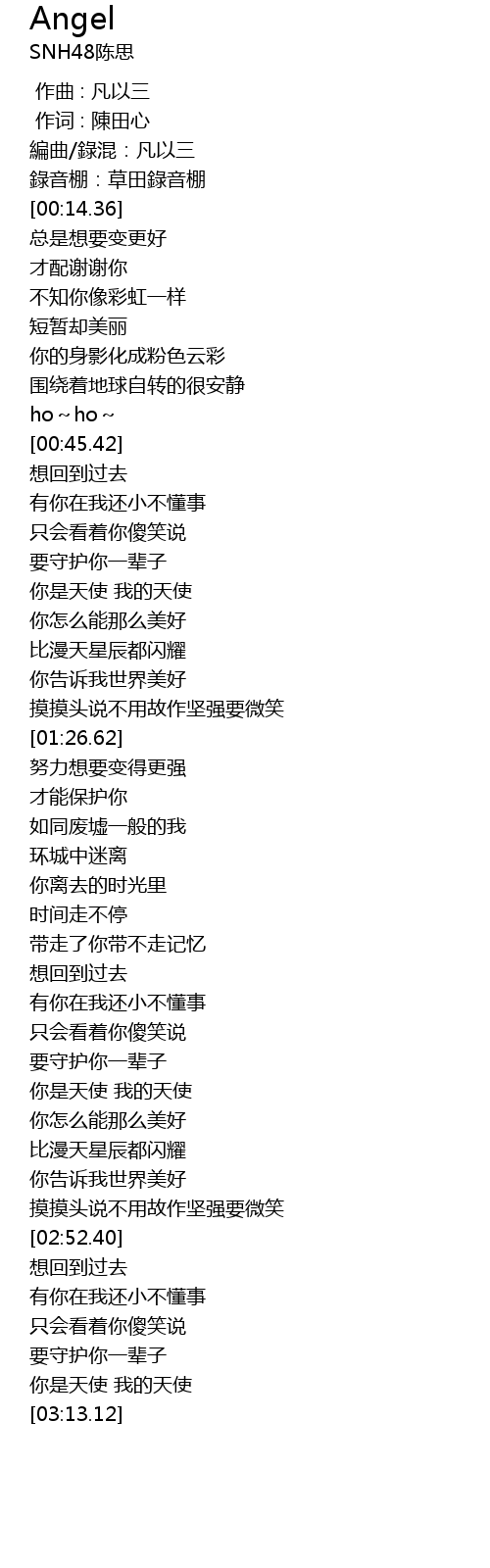 | [02:30.16] | nǐ shì tiān shǐ wǒ de tiān shǐ |