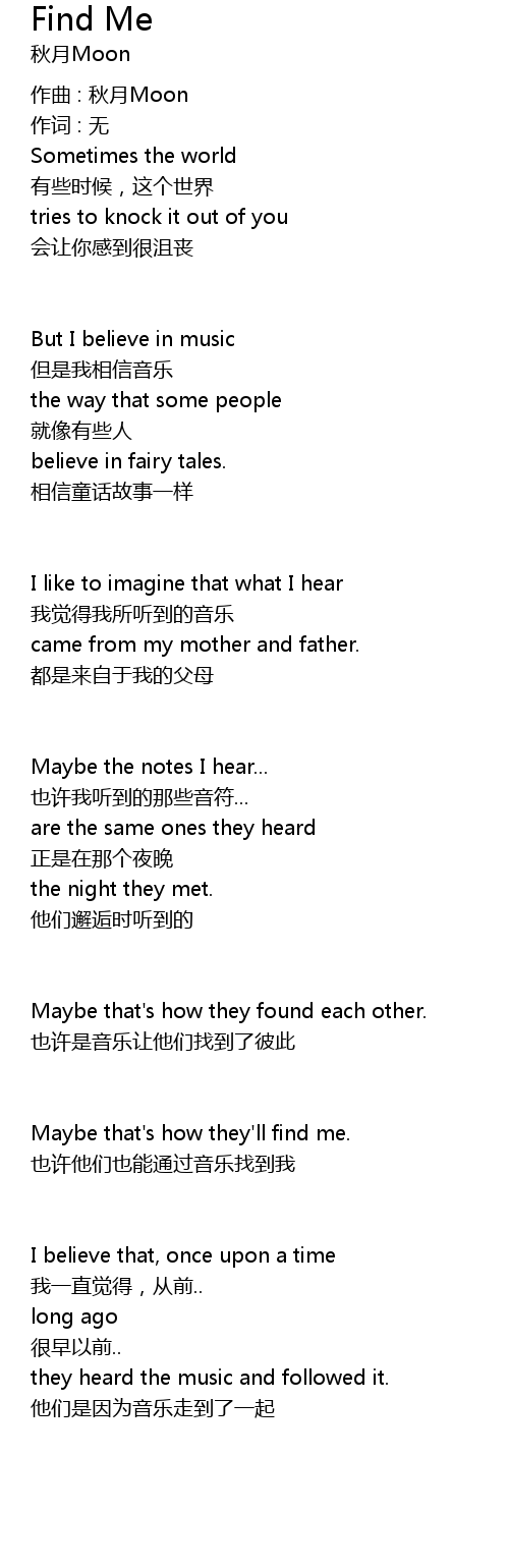 | yě xǔ tā men yě néng tōng guò yīn yuè zhǎo dào wǒ | |
