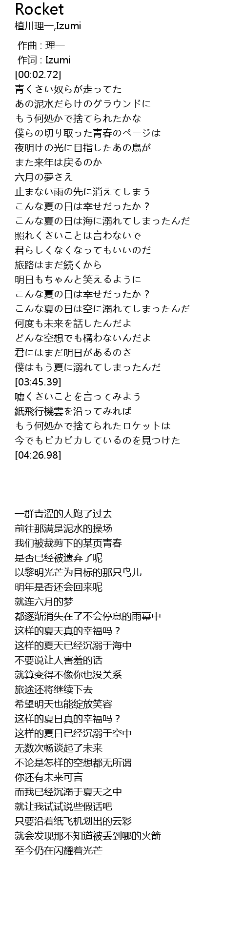 | [04:12.64] | もう何処かで捨てられたロケットは |
