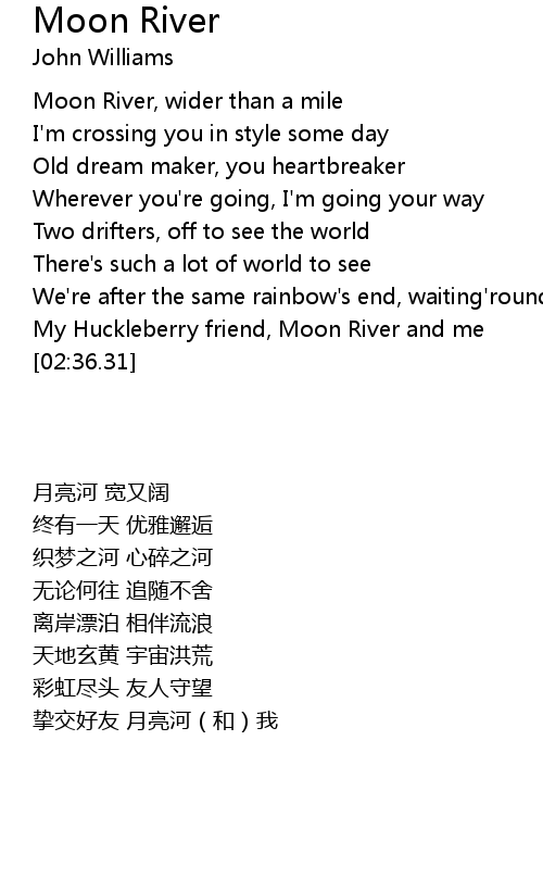 | [02:22.94] | My Huckleberry friend, Moon River and me |