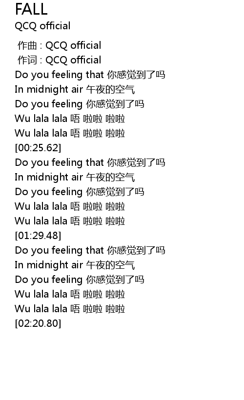 | [00:01.000] | 作词 : QCQ official |