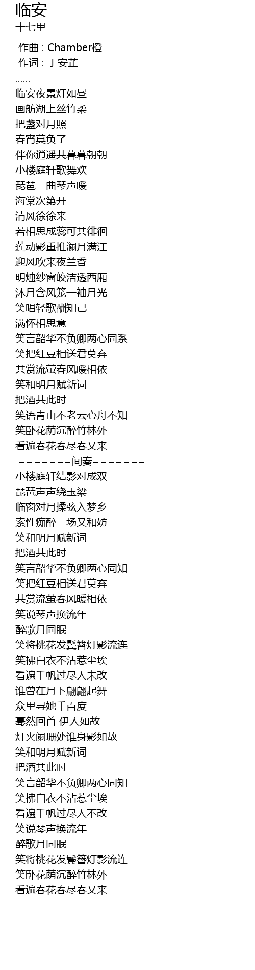 | [00:35.170] | lín ān yè jǐng dēng rú zhòu |