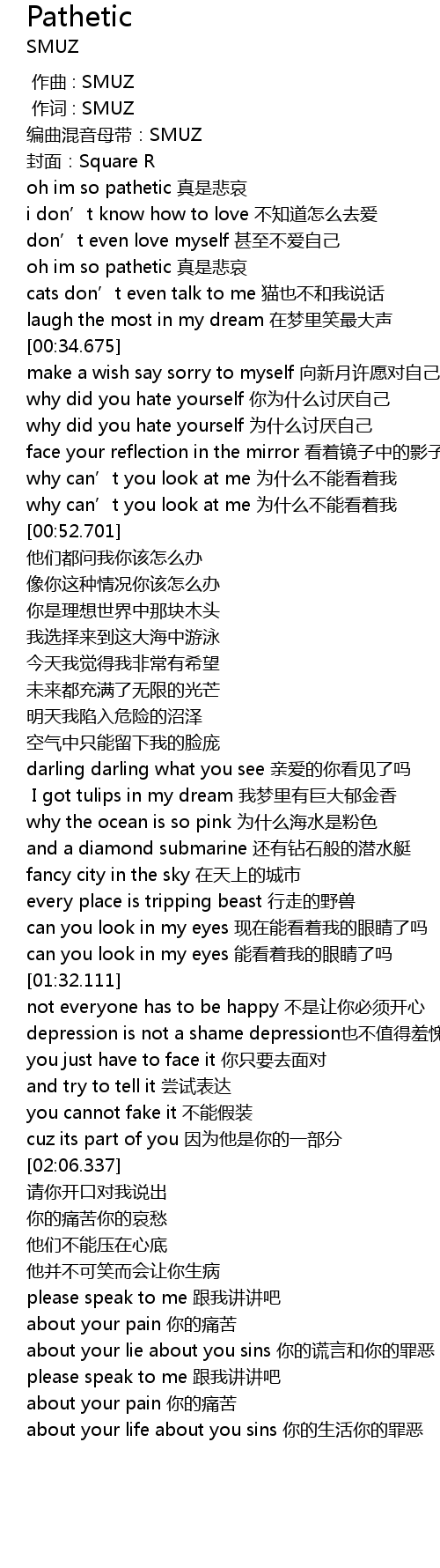 | [00:40.388] | why did you hate yourself 你为什么讨厌自己 |