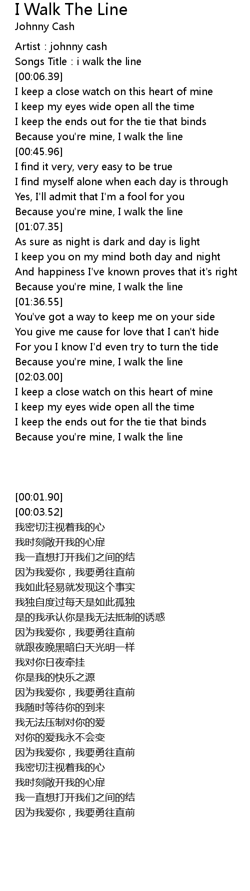 | [01:02.78] | Because you're mine, I walk the line |