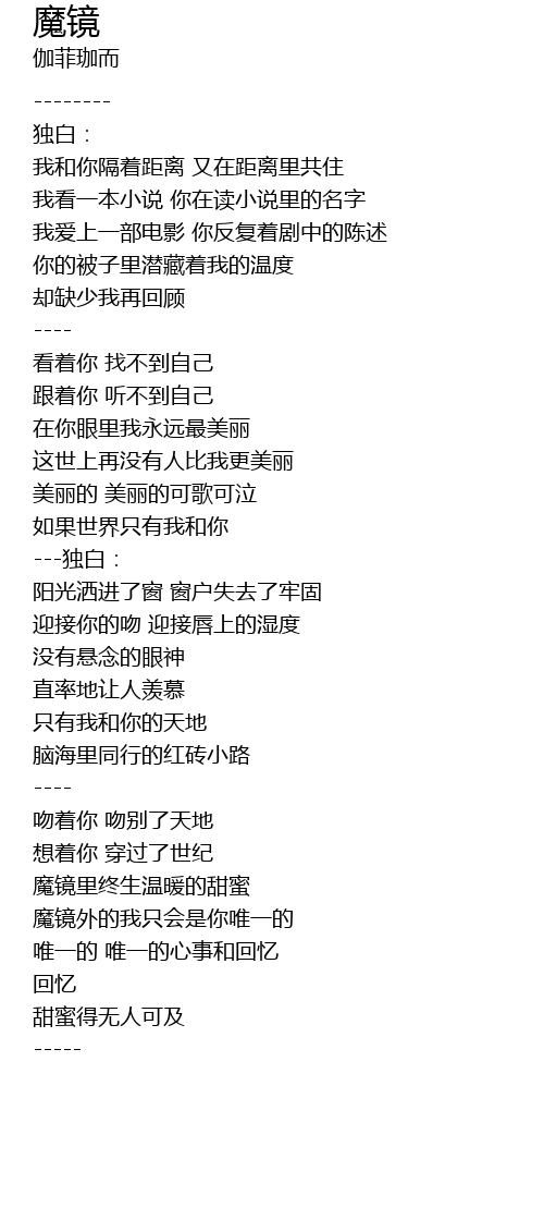 | [04:17.990] | 魔镜外的我只会是你唯一的 |