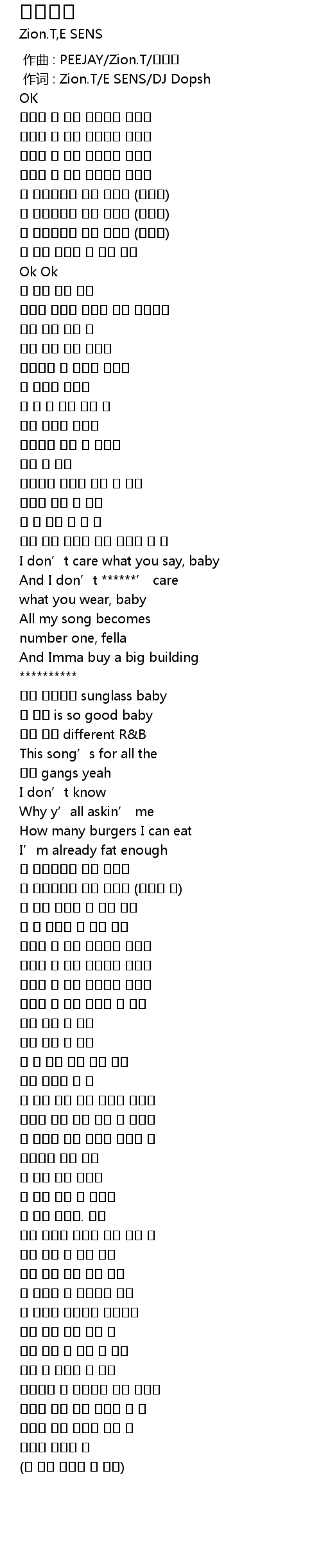 | [00:00.356] | 作词 : Zion.T/E SENS/DJ Dopsh |