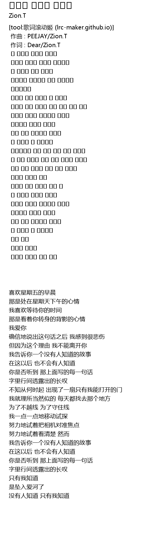 | [00:00.694] | 作词 : Dear/Zion.T |