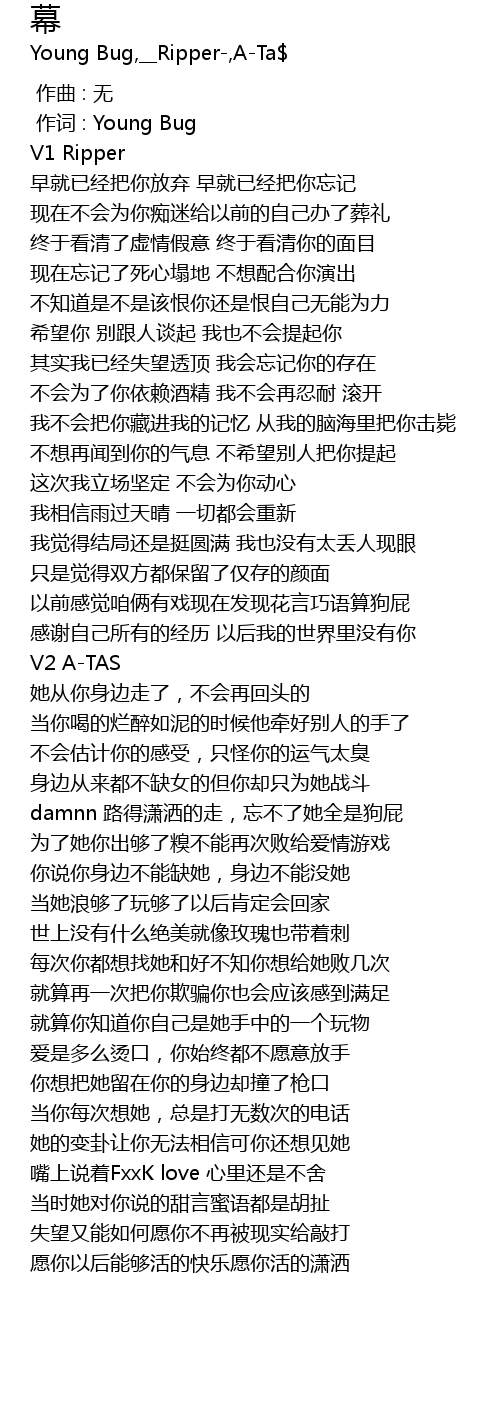 | [00:01.000] | 作词 : Young Bug |