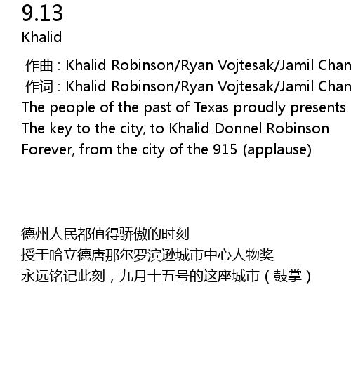 | [00:36.36] | The key to the city, to Khalid Donnel Robinson |