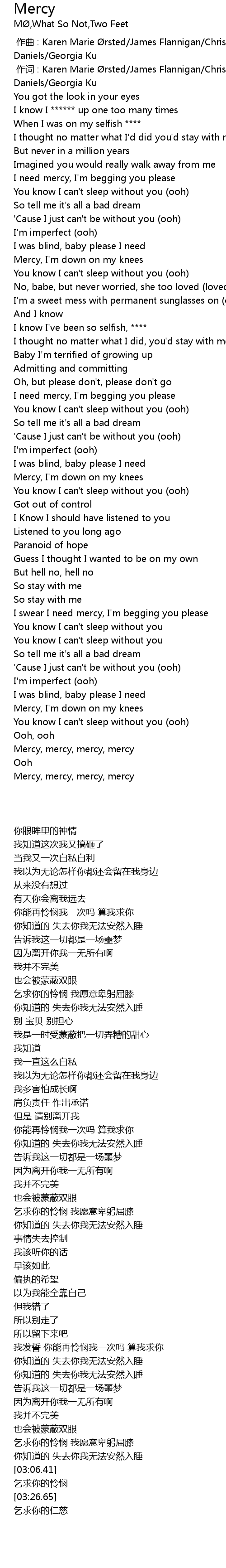 | [02:33.82] | I swear I need mercy, I' m begging you please |