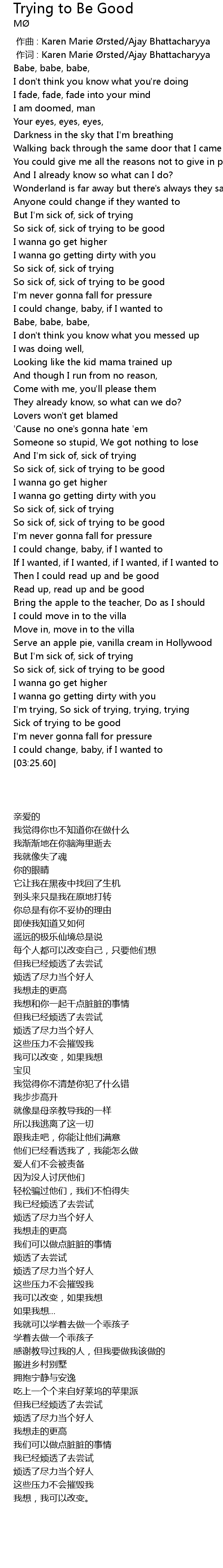| [03:09.59] | I'm trying, So sick of trying, trying, trying |