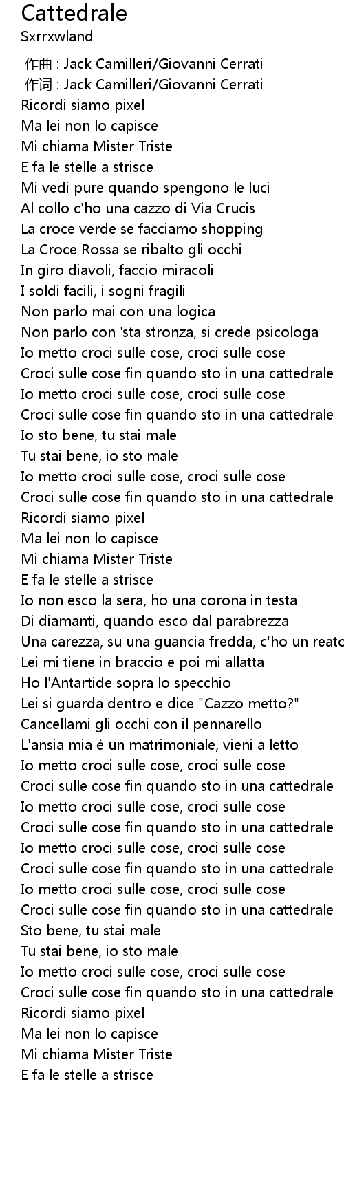| [01:23.58] | Croci sulle cose fin quando sto in una cattedrale |