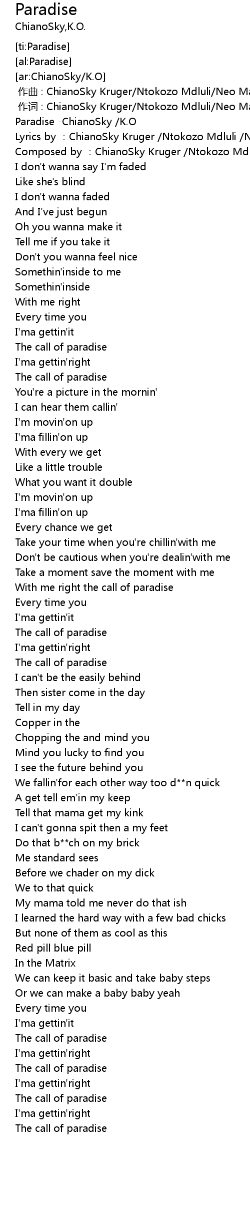 | [00:00.00] | Paradise -ChianoSky /K.O |
