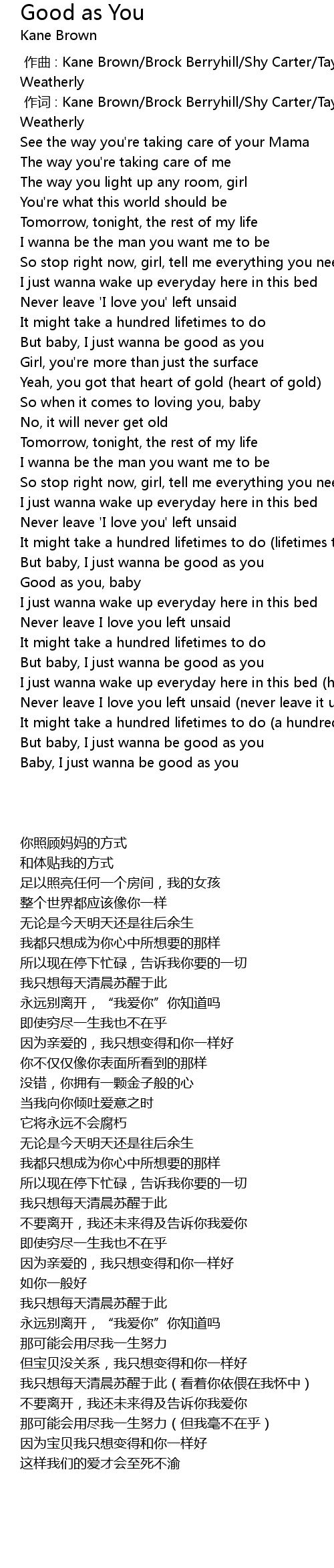 | [00:01.000] | 作词 : Kane Brown/Brock Berryhill/Shy Carter/Taylor Phillips/Will Weatherly |