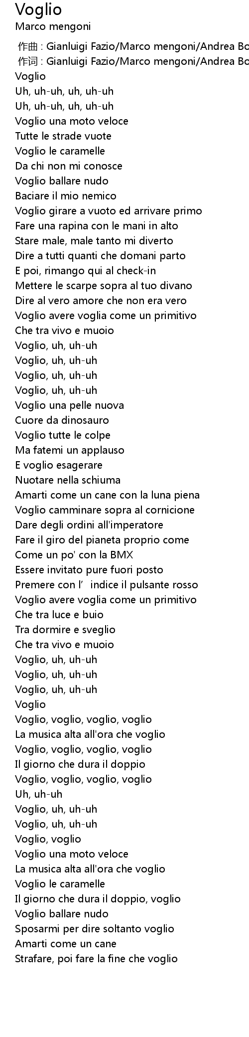 | [02:31.96] | Voglio, voglio, voglio, voglio |