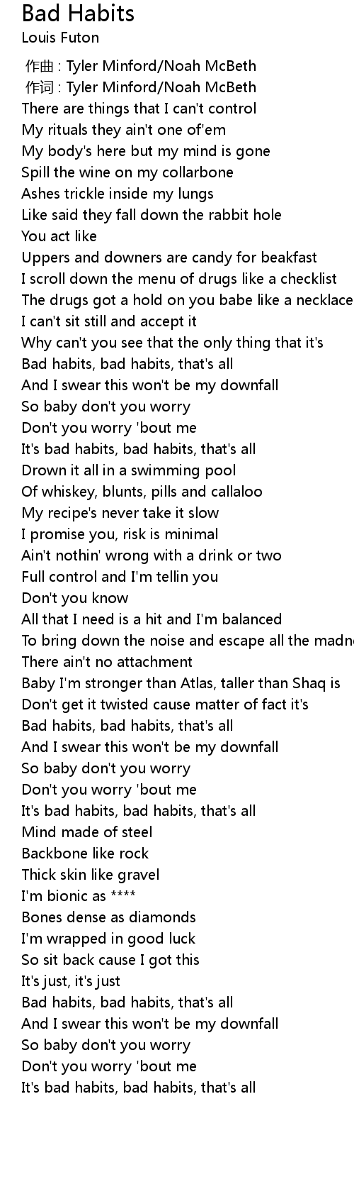 | [00:45.54] | Bad habits, bad habits, that's all |