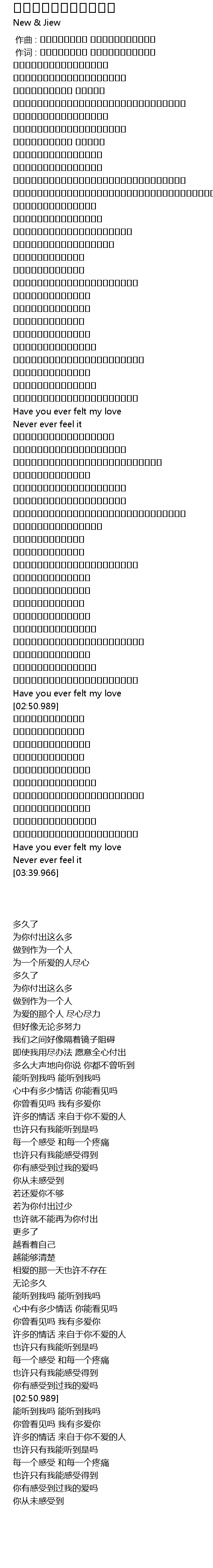 | [01:38.737] | 你有感受到过我的爱吗 |