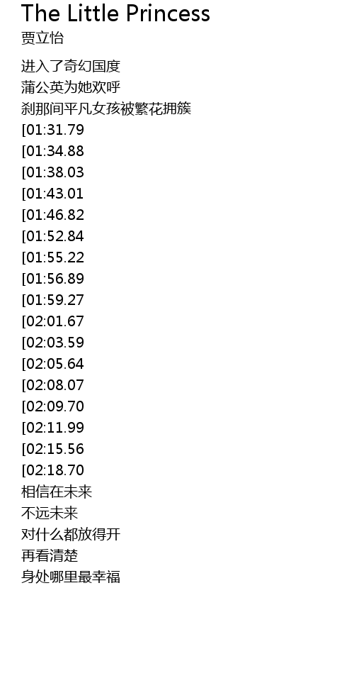 | [00:42.92][01:46.82] | 但为何要待我像小公主 |