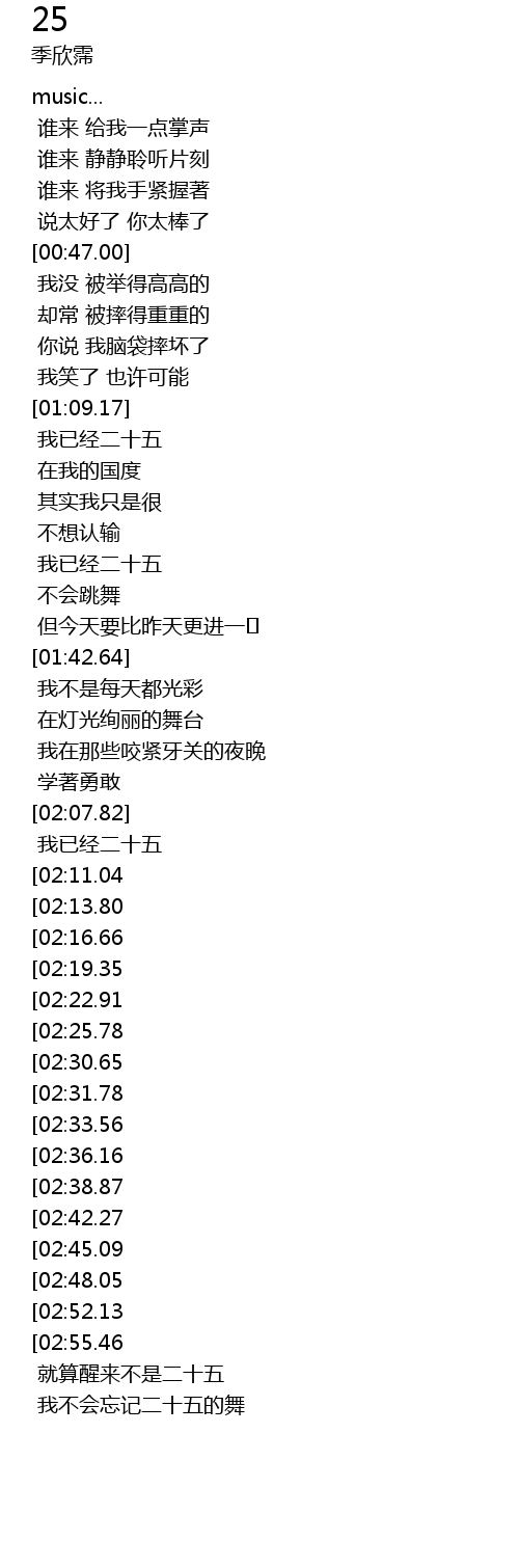 | [03:38.70][02:31.78] | 二十五 |
