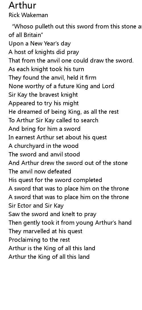 | Arthur the King of all this land |