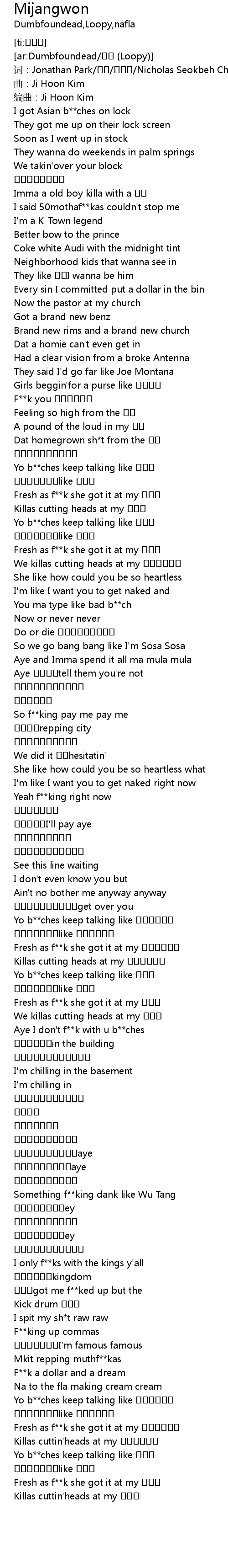 | [03:48.479] | Fresh as f**k she got it at my 미장원미장원 |