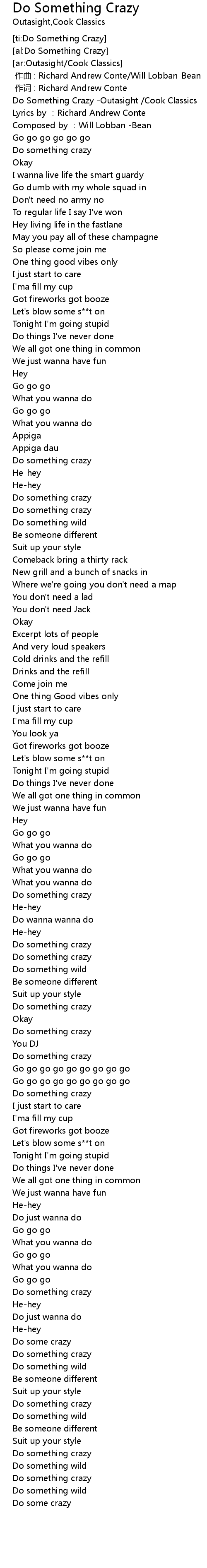 | [00:00.00] | Do Something Crazy -Outasight /Cook Classics |