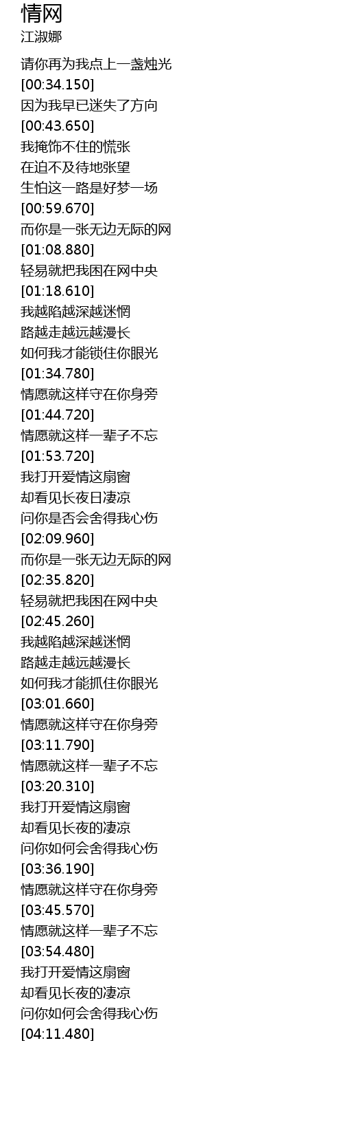| [02:28.960] | 而你是一张无边无际的网 |