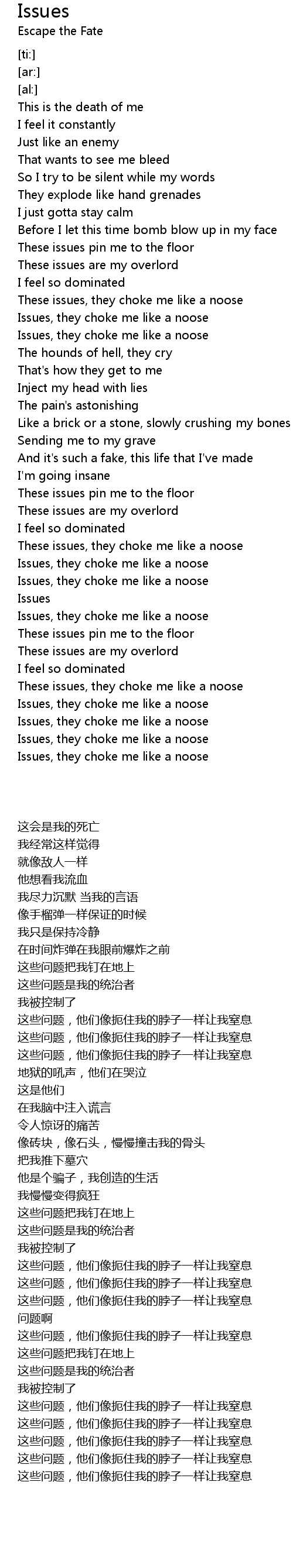 Issues, they choke me like a noose |