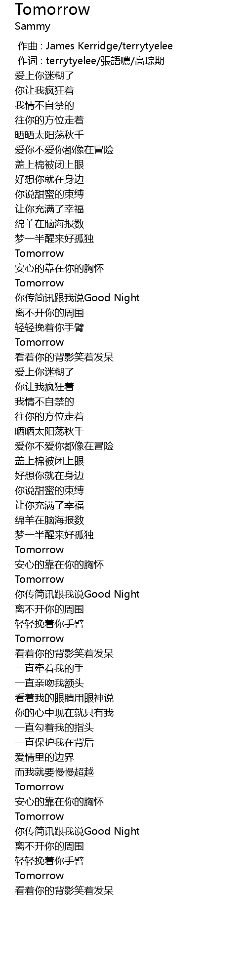 | [00:01.000] | 作词 : terrytyelee/張語噥/高琮期 |