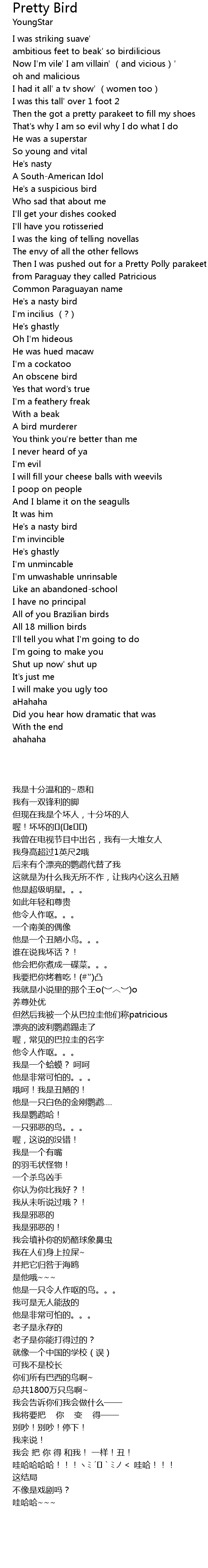 | [00:56.42] | 漂亮的波利鹦鹉踢走了 |