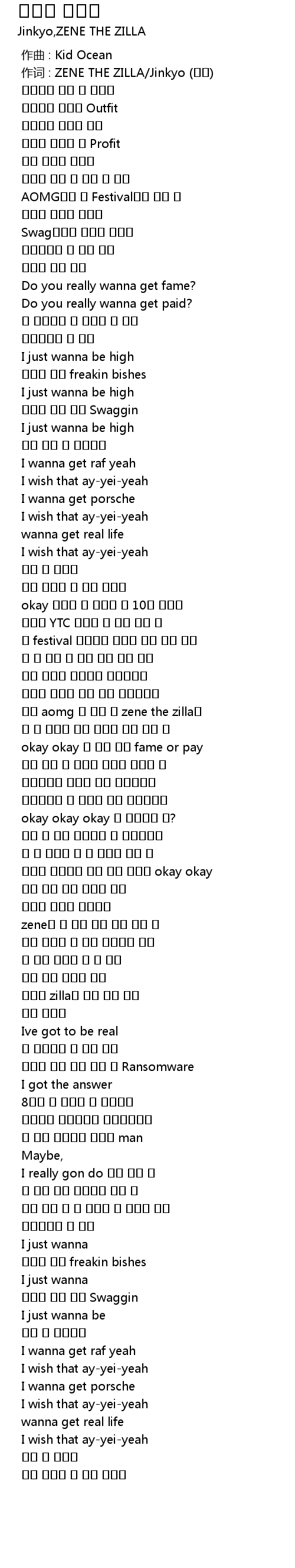 | [01:31.125] | 나는 aomg 못 가도 걍 zene the zilla야 |