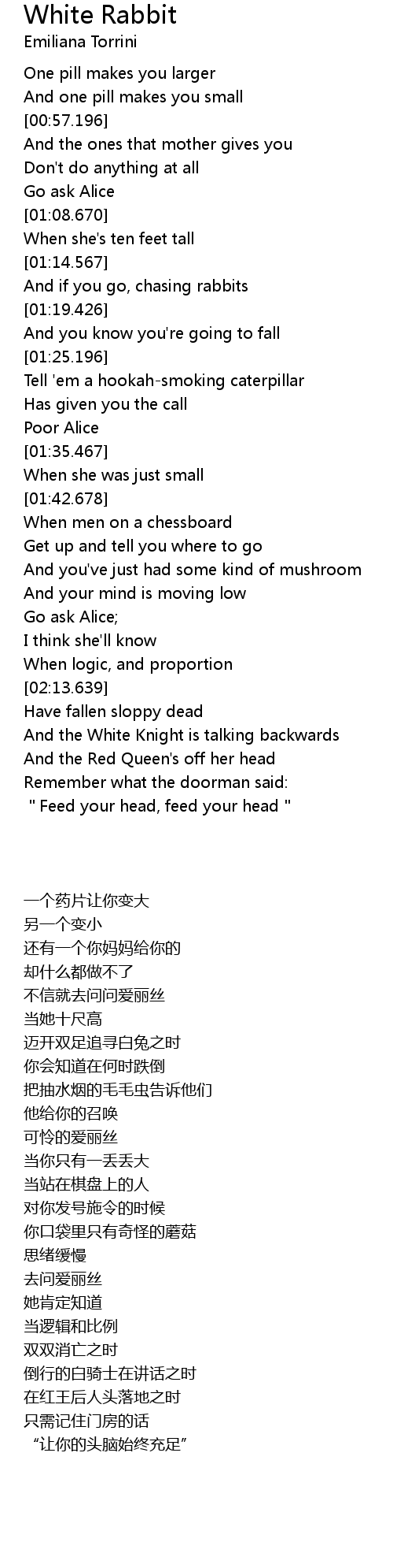 | [02:23.800] | And the Red Queen' s off her head |