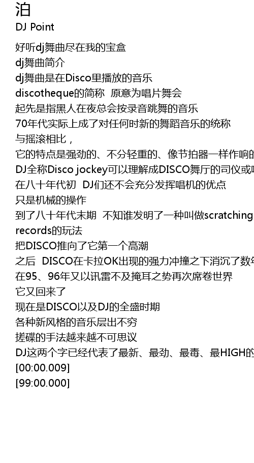 [01:32.39] dj舞曲是在Disco里播放的音乐