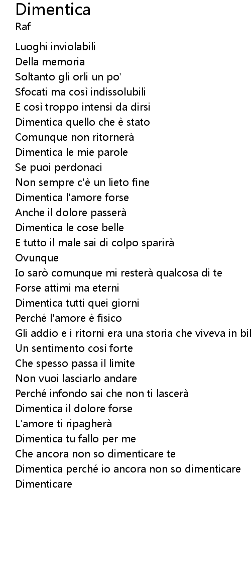 | [03:25.49] | Dimentica perche io ancora non so dimenticare |