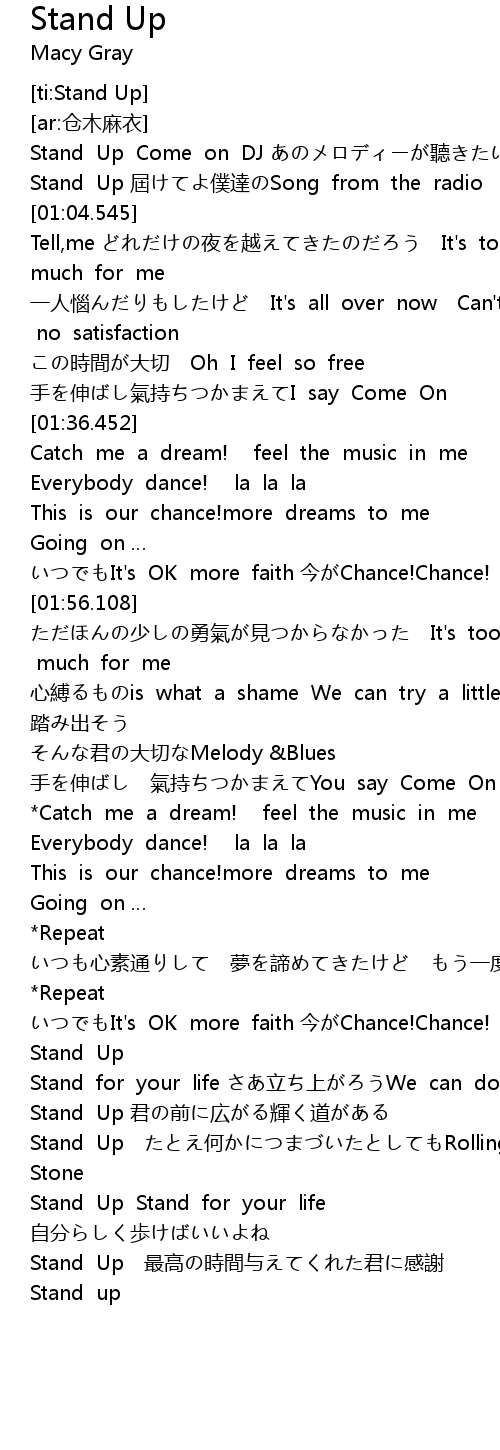 | [04:20.94] | Stand Up |