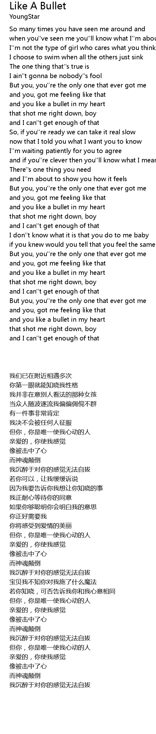 and you like a bullet in my heart |