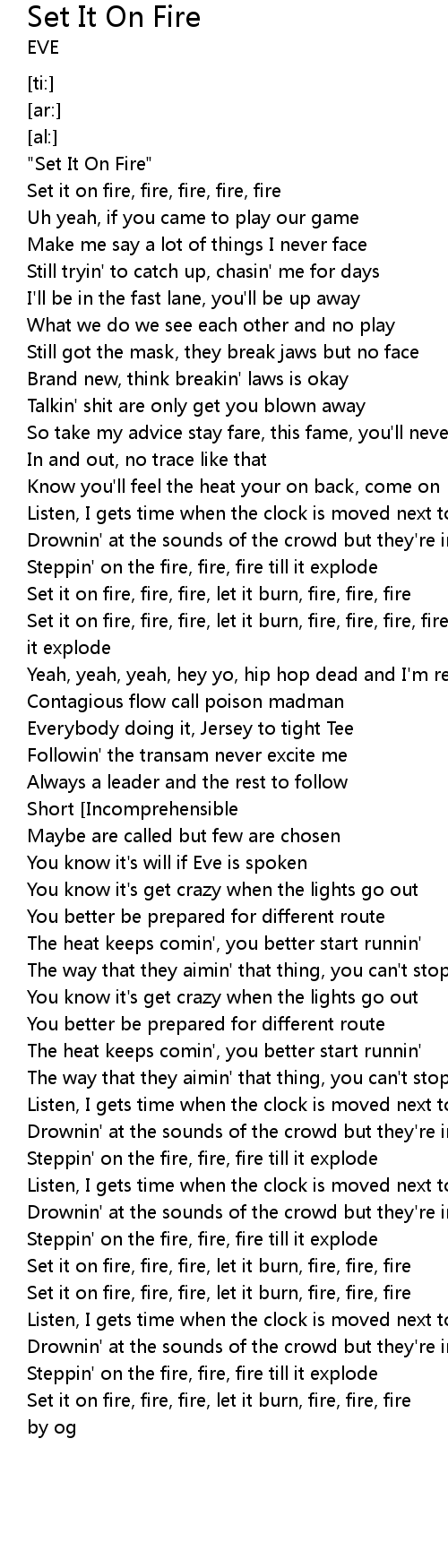 Set it on fire, fire, fire, fire, fire |