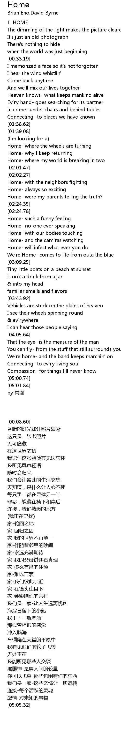 | [03:00.54] | We're Home- comes to life from outa the blue |
