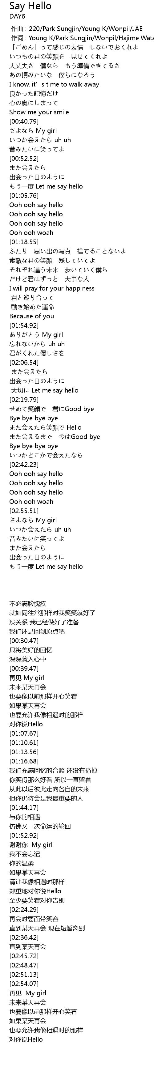 | [00:01.000] | 作词 : Young K/Park Sungjin/Wonpil/Hajime Watanabe |
