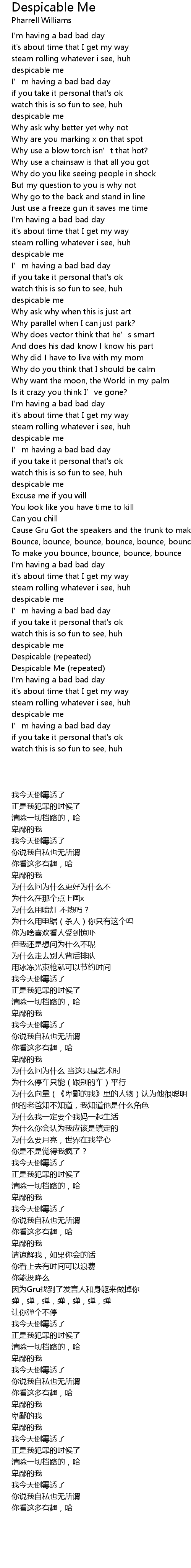 | [02:05.330] | Cause Gru Got the speakers and the trunk to make you |