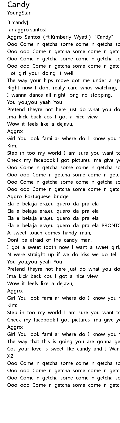 | [00:15.75] | Ooo Come n getcha some come n getcha some,Candy |