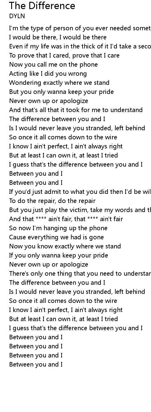 The difference between you and I |