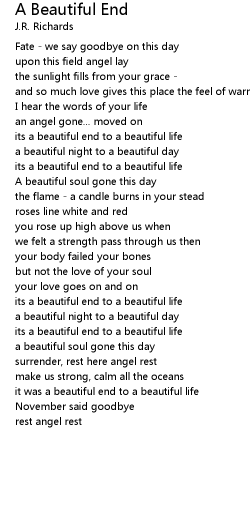 its a beautiful end to a beautiful life |