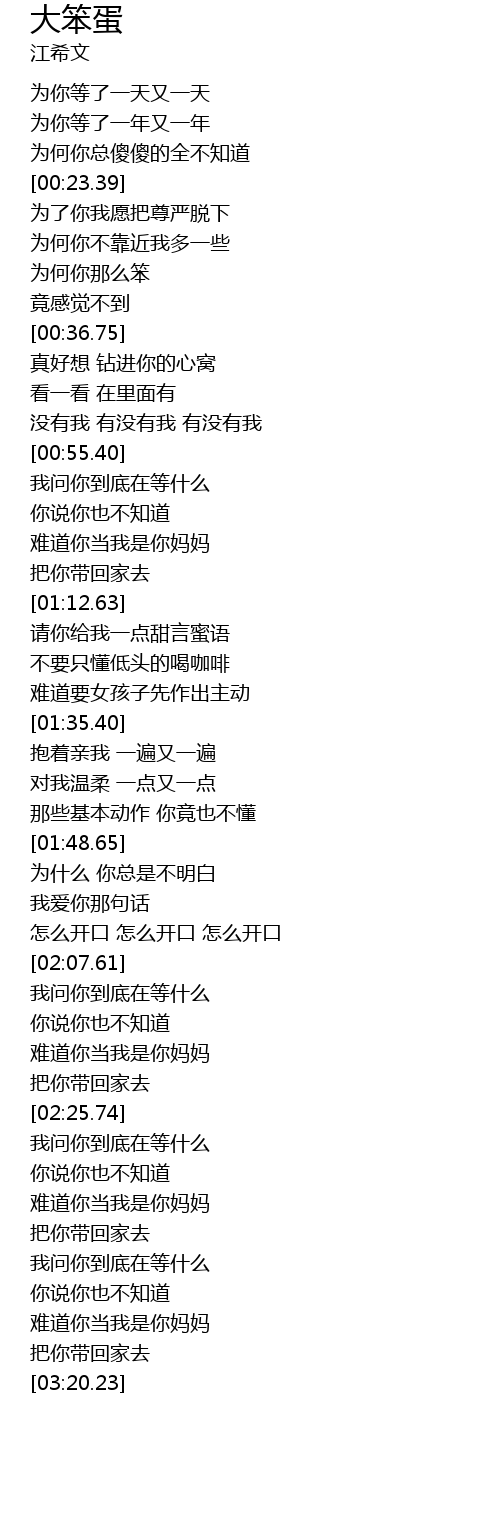 | [00:31.78] | wèi hé nǐ nà me bèn |